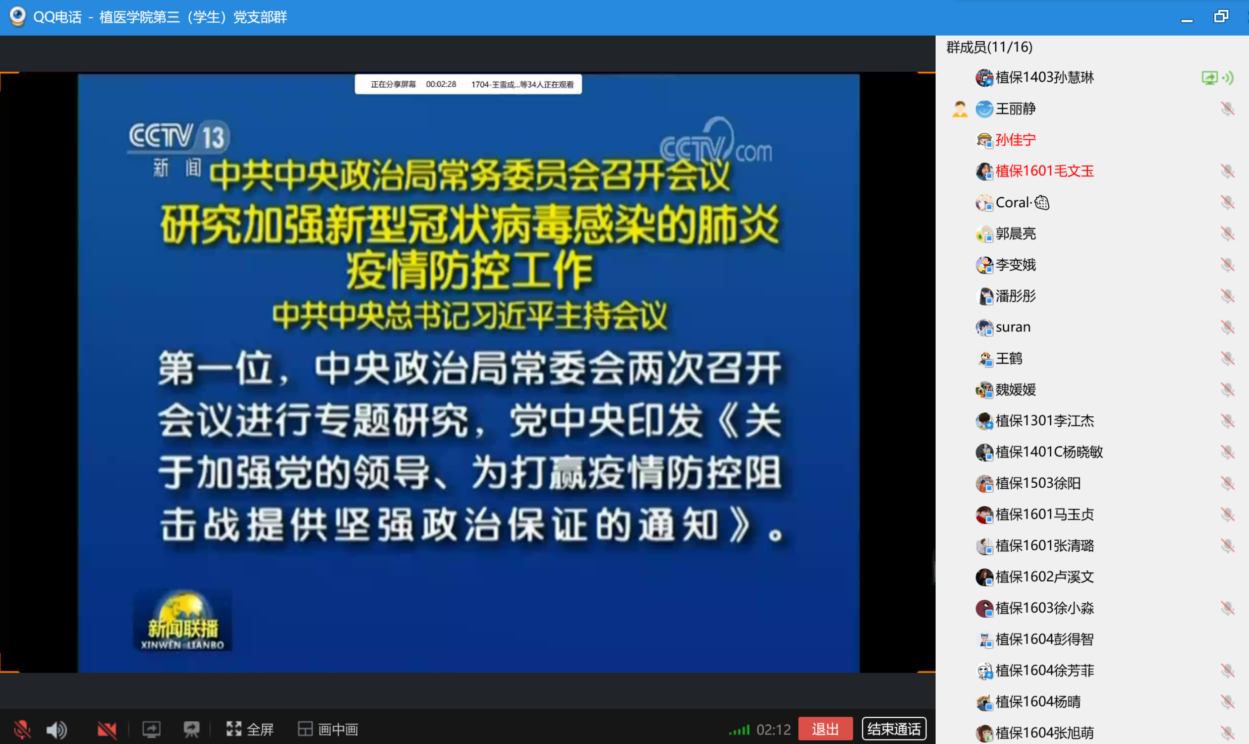 3月26日晚,tyc7111cc太阳成集团第三(学生)党支部通过网络直播连线召开线上政治学习,深入学习和贯彻习近平总书记重要讲话精神。学院团委书记、第三(学生)党支部书记王丽静及全体学生党员参加,会议由学生党员李雯主持。