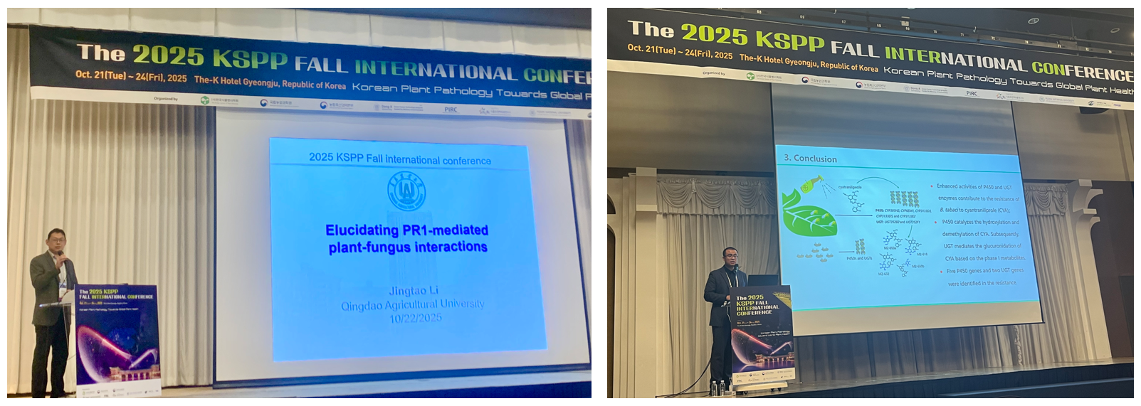 此外,太阳成tyc7111cc李敬涛教授、郭磊副教授受邀参加了2025年韩国植物病理学会秋季国际会议,并分别作了精彩的学术报告,在分享我校植物病理领域最新研究成果的同时,引发了与会各国学者的关注与讨论,更加有力地推动了我校与国外同行的深度交流与合作。