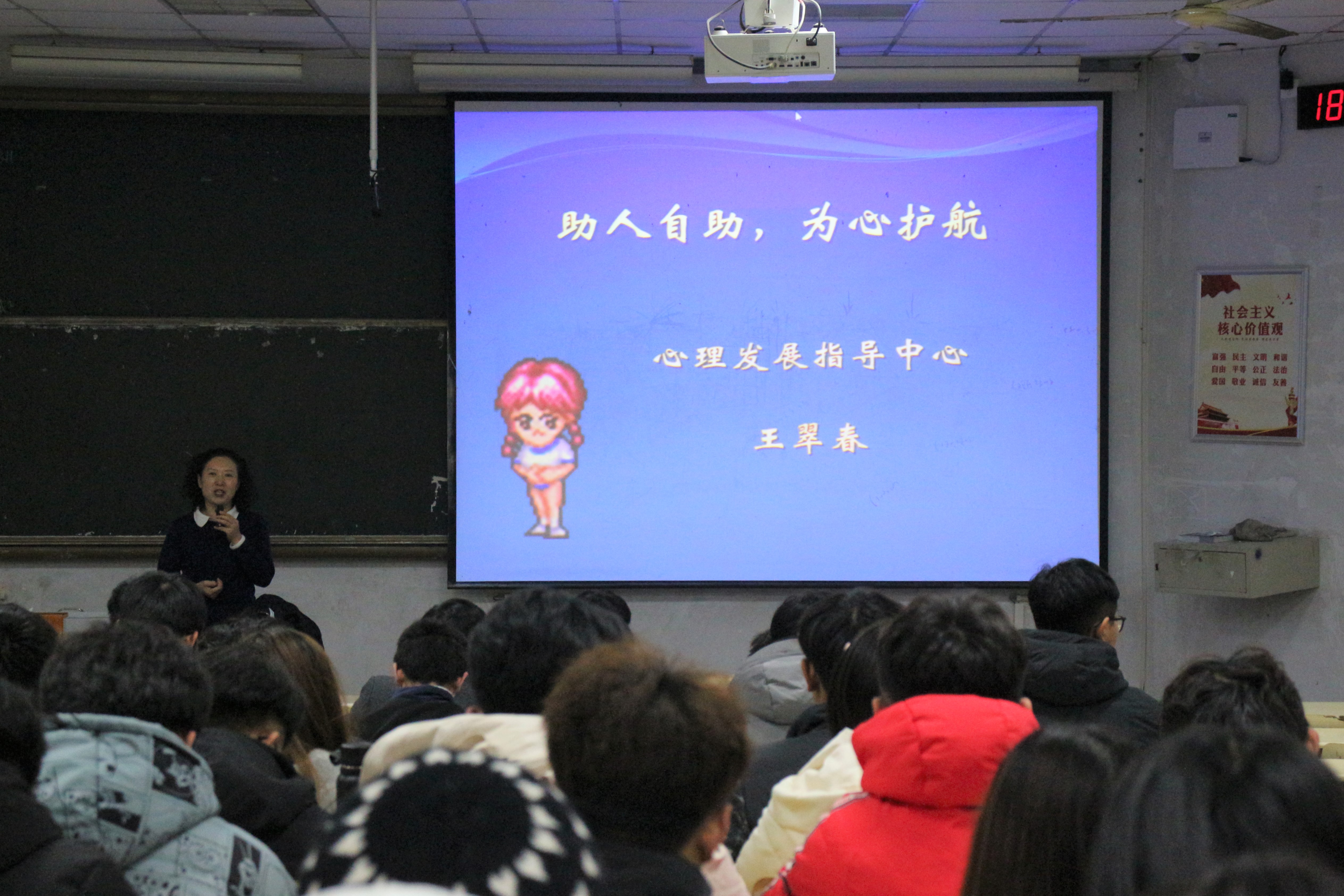 为进一步加强新生心理健康建设、明确心理骨干职责,12月2日,太阳成tyc7111cc心理发展指导中心于教学区B区召开主题为“助人自助,为心护航”心理健康教育骨干培训会,会议由心理发展中心指导老师王翠春主讲,学院新生心理健康工作学生骨干参加。