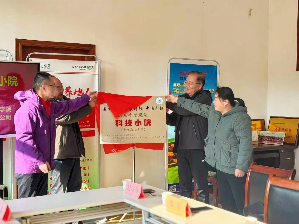 学院党委副书记、副院长李军,副院长赵洪海,小院首席专家孙丽娟副教授、科技小院依托单位负责人王英奇博士共同为平度蔬菜科技小院揭牌,标志着科技小院完成阶段性建设,开启人才培养和服务蔬菜产业高质量发展的新征程。