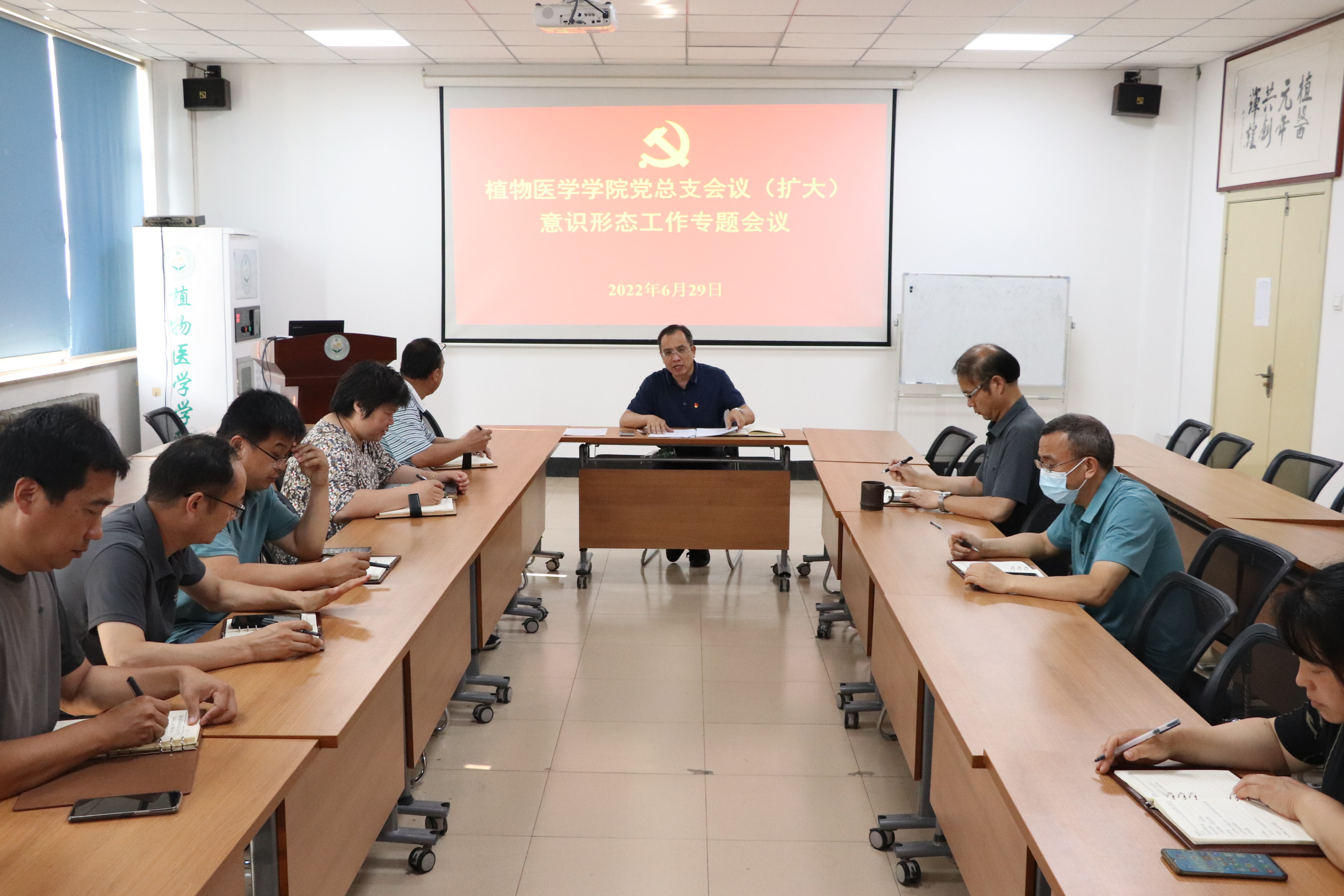 6月29日,tyc7111cc太阳成集团在学院会议室召开党总支会议(扩大)专题研究部署意识形态工作,学院党总支委员、专职组织员、各支部书记、系主任、科级干部参加会议,会议由学院党总支书记韩强主持。