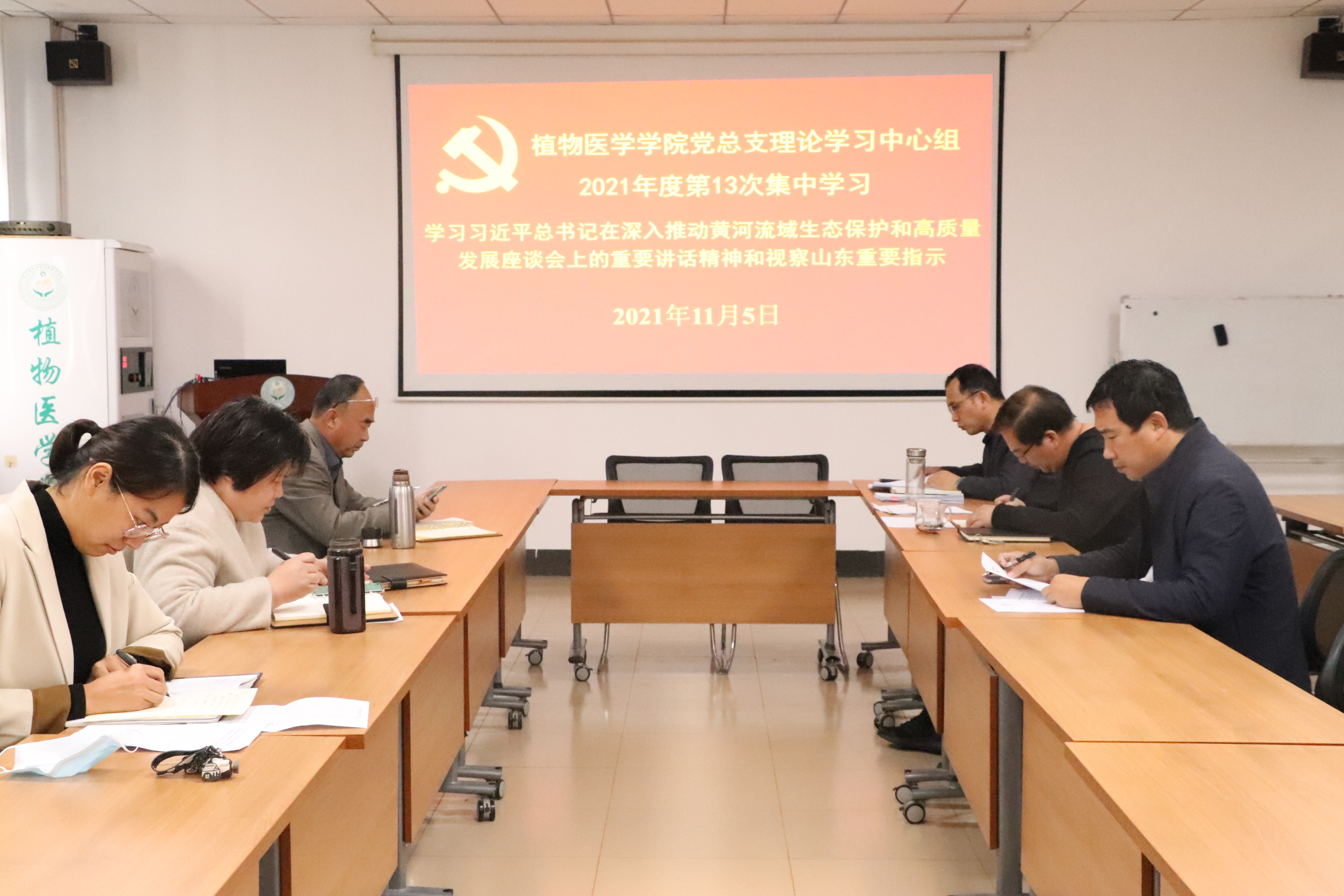 11月5日,tyc7111cc太阳成集团党总支理论学习中心组举行2021年度第13次集中学习,围绕“习近平总书记在深入推动黄河流域生态保护和高质量发展座谈会上的重要讲话精神和视察山东重要指示”进行专题学习和交流研讨,会议由党总支书记韩强主持,学院党总支理论学习中心组全体成员参加。