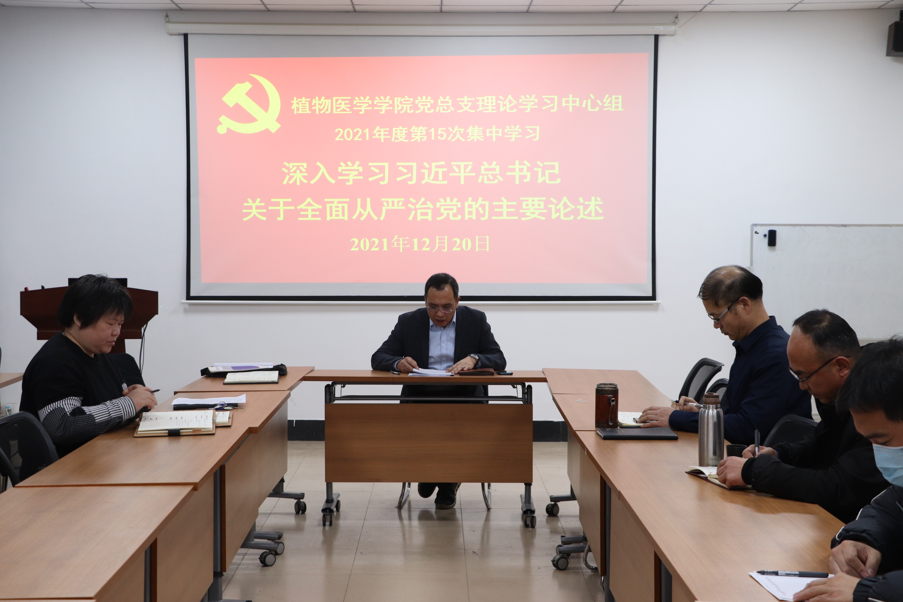 12月20日,tyc7111cc太阳成集团党总支理论学习中心组在学院会议室召开2021年度第15次集中学习(扩大),专题学习“深入学习习近平总书记关于全面从严治党的重要论述”,学院党总支理论学习中心组全体成员、各支部书记、教工党支部委员参加学习,会议由党总支书记韩强主持。