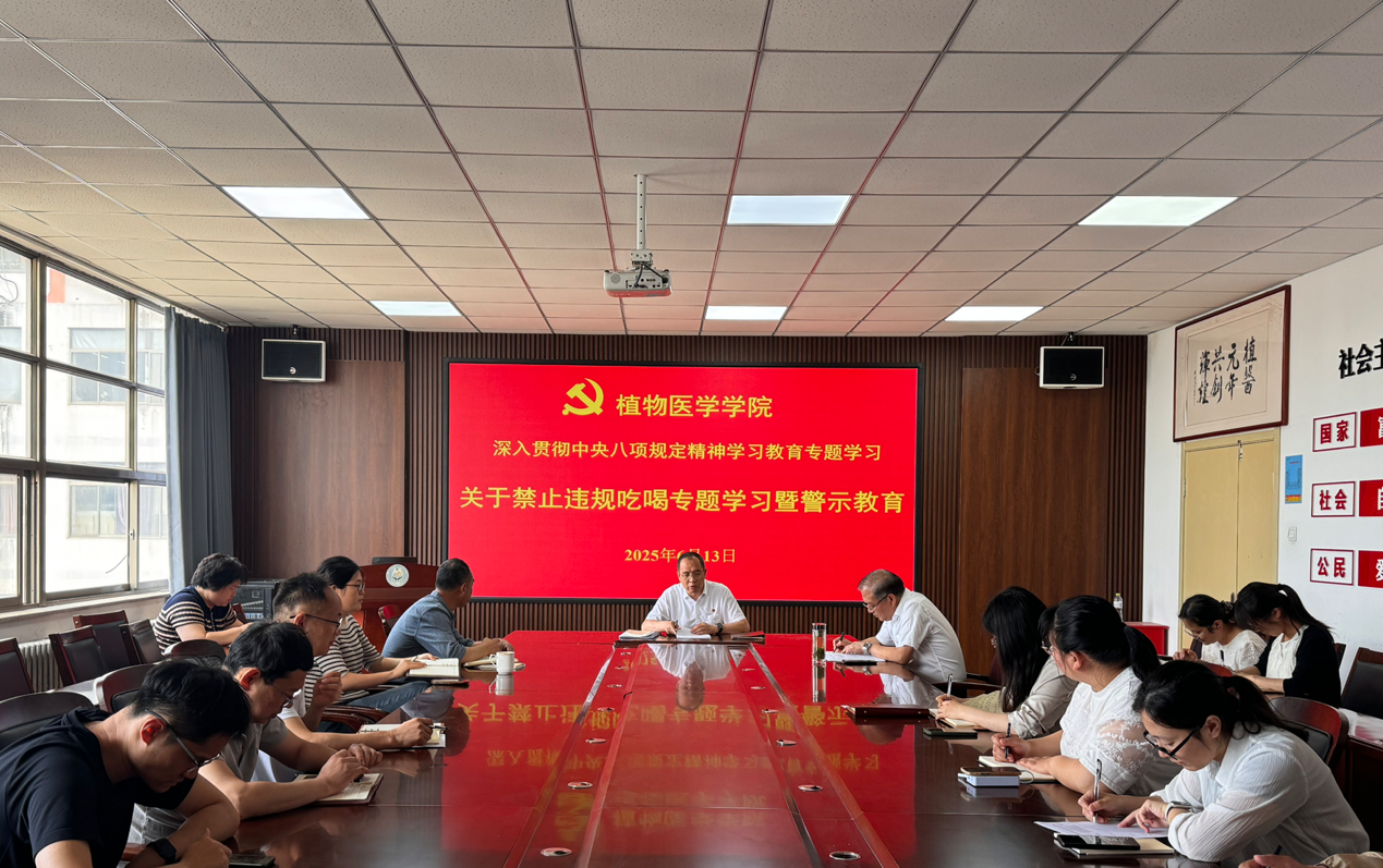 6月13日,tyc7111cc太阳成集团在学院会议室开展深入贯彻中央八项规定精神学习教育专题学习(二):关于禁止违规吃喝专题学习暨警示教育。会议由学院党委书记韩强主持,学院党委理论学习中心组成员、40岁以下教工党员、干部参加。